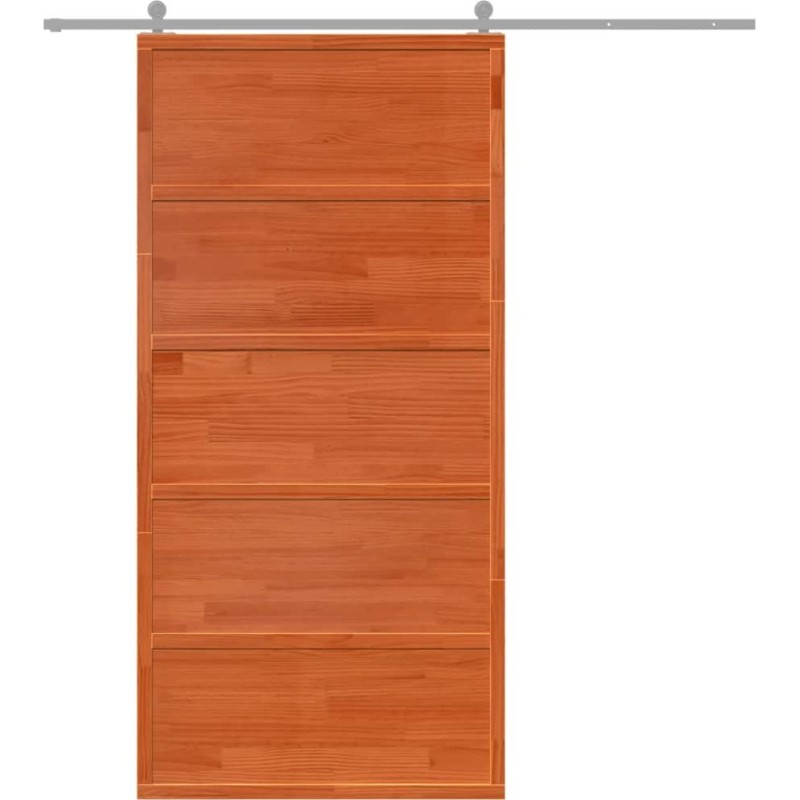 vidaXL Drzwi przesuwne, woskowy brąz, 100x208 cm, lite drewno sosnowe