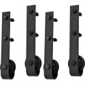 Przesyłka obejmuje 4 prowadnice ślizgowe, 4 rolki, 4 ograniczniki, 2 prowadnice podłogowe, 4 antyskoki, 10 zacisków mocujących i inny potrzebny sprzęt. Uwaga: Drzwi nie są częścią zestawu.