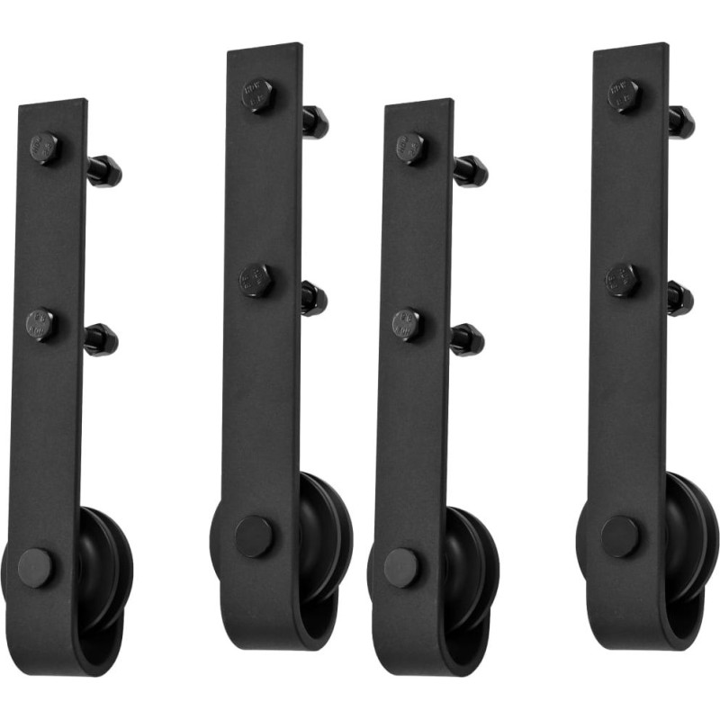 Każdy zestaw do zawieszania drzwi przesuwnych zawiera 2 wysokiej jakości prowadnice (o całkowitej długości 200 cm) i 2 wytrzymałe rolki. Prowadnice wykonano z malowanej proszkowo stali, która jest mocna, wytrzymała i trwała. Za sprawą wewnętrznych łożysk drzwi będą przesuwały się gładko i cicho. Ograniczniki zapobiegną wypadaniu rolek z prowadnic, a gumowe uszczelki osłabią uderzenie rolek i zredukują hałas. System jezdny do drzwi suwanych wyposażony jest również w wysokiej jakości prowadnicę podłogową, która ustabilizuje ruch drzwi.