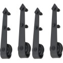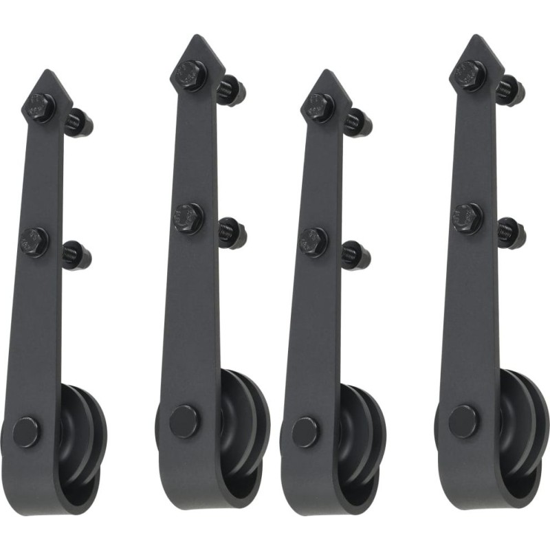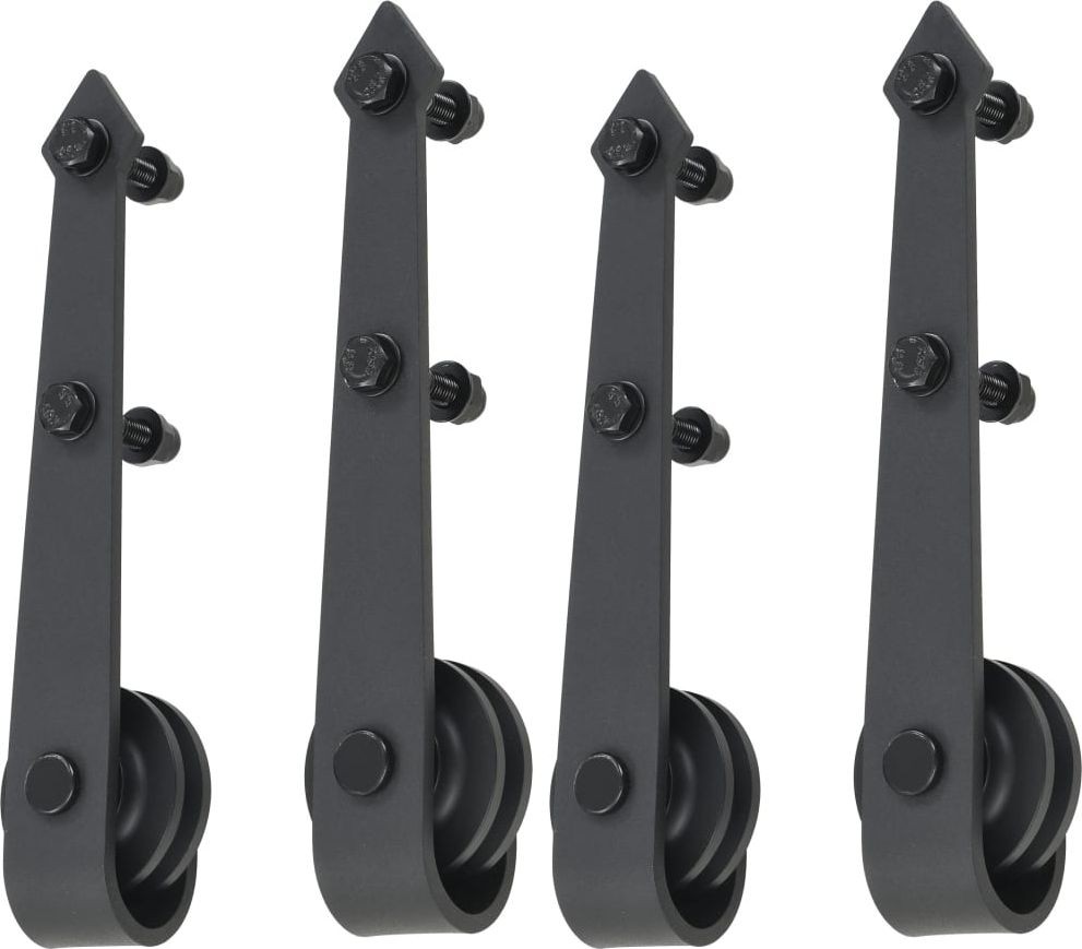 Każdy zestaw do zawieszania drzwi przesuwnych zawiera 2 wysokiej jakości prowadnice (o całkowitej długości 200 cm) i 2 wytrzymałe rolki. Prowadnice wykonano z malowanej proszkowo stali, która jest mocna, wytrzymała i trwała. Za sprawą wewnętrznych łożysk drzwi będą przesuwały się gładko i cicho. Ograniczniki zapobiegną wypadaniu rolek z prowadnic, a gumowe uszczelki osłabią uderzenie rolek i zredukują hałas. System jezdny do drzwi suwanych wyposażony jest również w wysokiej jakości prowadnicę podłogową, która ustabilizuje ruch drzwi.