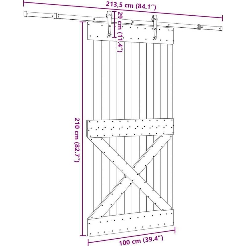 vidaXL vidaXL Drzwi przesuwne z osprzętem, 100x210 cm, lite drewno sosnowe