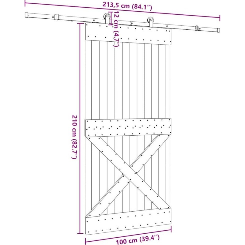 vidaXL Drzwi przesuwne z osprzętem, 100x210 cm, lite drewno sosnowe