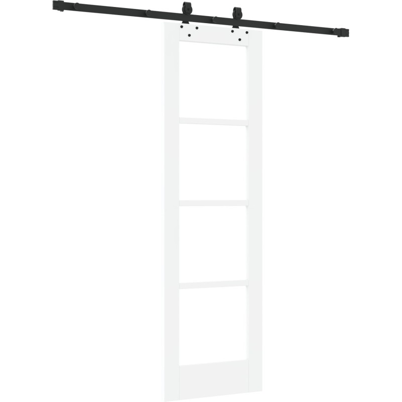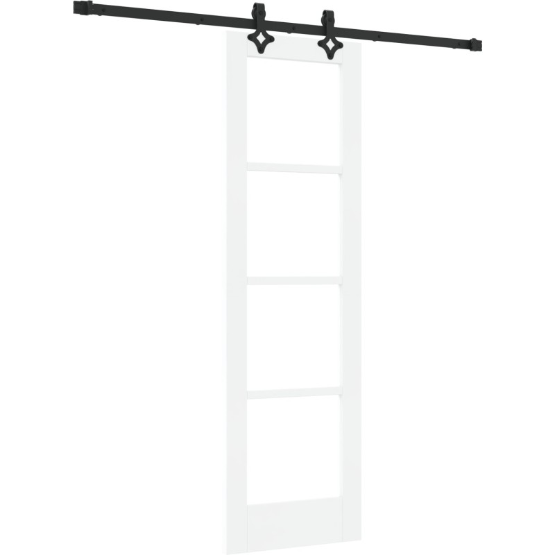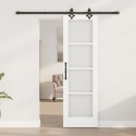 Drzwi przesuwne vidaXL z zestawem sprzętu 'ORKDAL' to znakomite połączenie elegancji i funkcjonalności, które wzbogaci każde wnętrze. Wykonane z litego drewna w kolorze białym, z gustowną szklaną wstawką, te drzwi doskonale wkomponują się w różnorodne aranżacje, nadając im nowoczesny charakter.