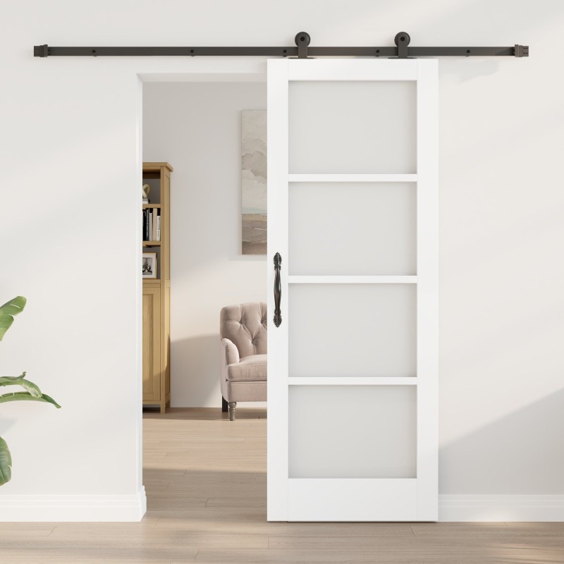 Drzwi przesuwne z zestawem akcesoriów "ORKDAL" Białe 73,5x198,5 cm, Drzwi wewnętrzne z szybą "ORKDAL" Białe 73,5x198,5x4 cm