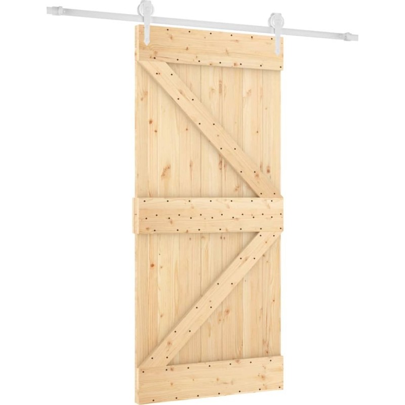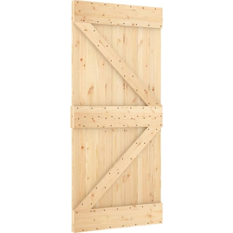 vidaXL Drzwi przesuwne z osprzętem, 95x210 cm, lite drewno sosnowe