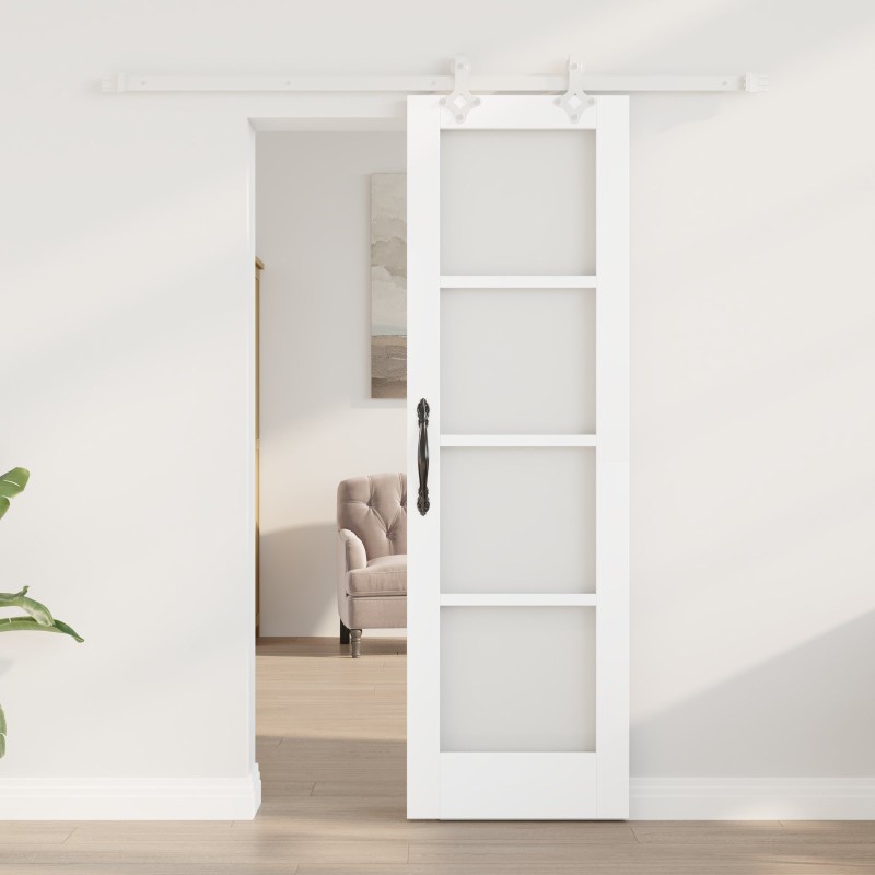 Zestaw drzwi przesuwanych vidaXL z akcesoriami Białe 61x198,5 cm Drewno sosnowe, Drzwi wewnętrzne vidaXL z szybą 'ORKDAL'Białe 6