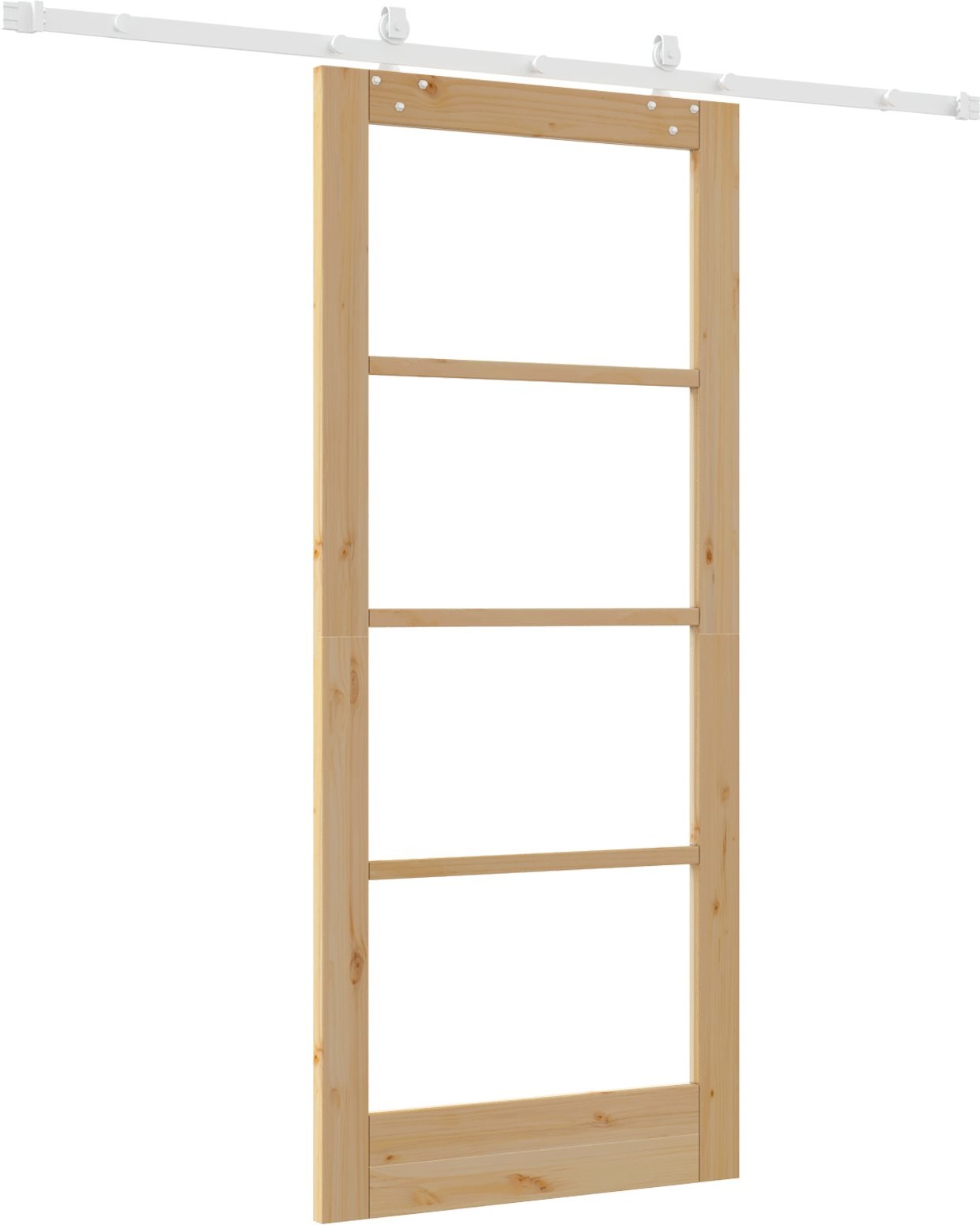 Zestaw drzwi przesuwanych vidaXL z akcesoriami 86x198,5 cm z litego drewna sosnowego, Wewnętrzne drzwi vidaXL z szybą 'ORKDAL'86