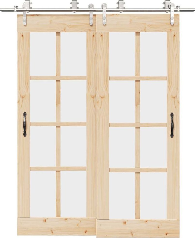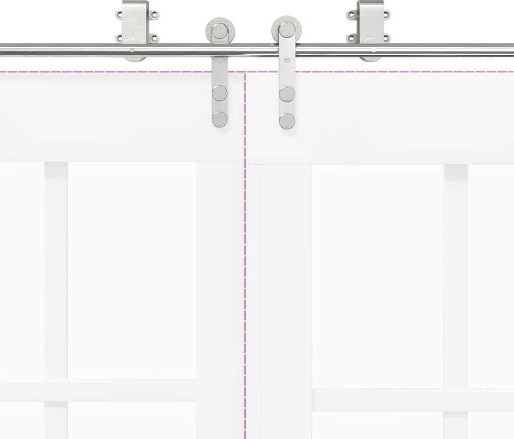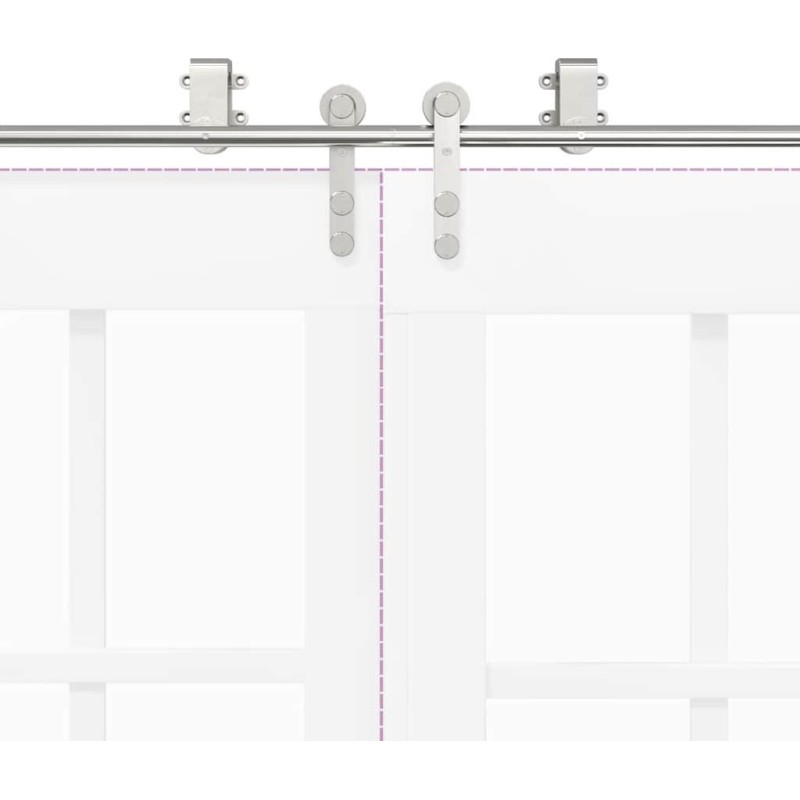 - Idealny do podwójnych drzwi do stodoły: gdy przestrzeń na ścianie jest ograniczona, zestaw uchwytów omijających drzwi do stodoły umożliwia niezależne przesuwanie dwóch drzwi na dwóch szynach bez konieczności zapewnienia dodatkowego miejsca.
