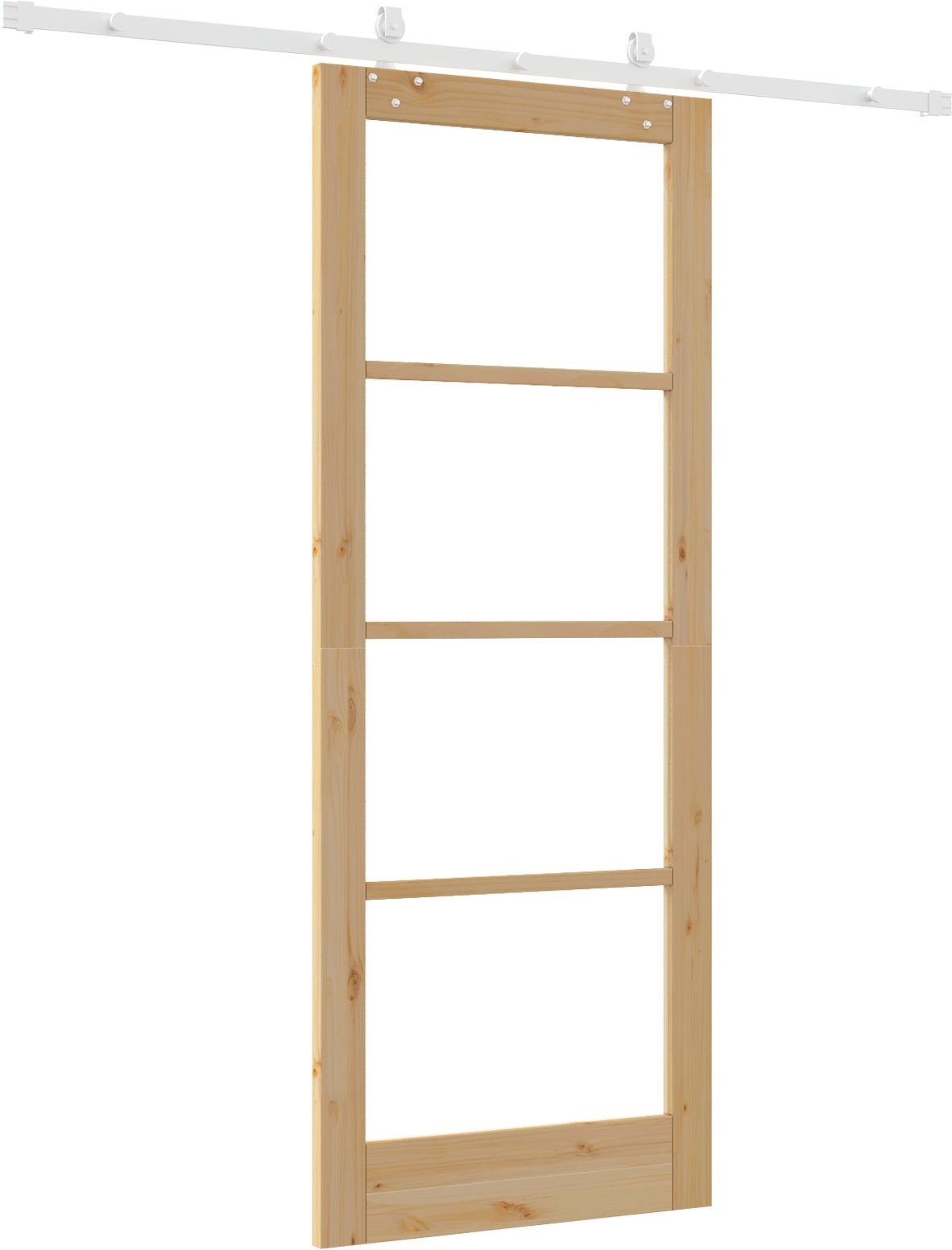 Zestaw drzwi przesuwanych vidaXL z akcesoriami 83x211 cm z litego drewna sosnowego, Drzwi wewnętrzne vidaXL z przeszkleniem 'ORK
