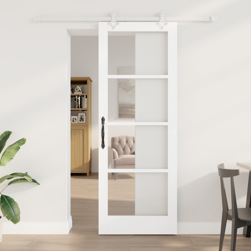Białe drzwi przesuwne z zestawem akcesoriów vidaXL 78x211 cm Lite drewno sosnowe, Drzwi wewnętrzne vidaXL z szkłem 'ORKDAL'Białe