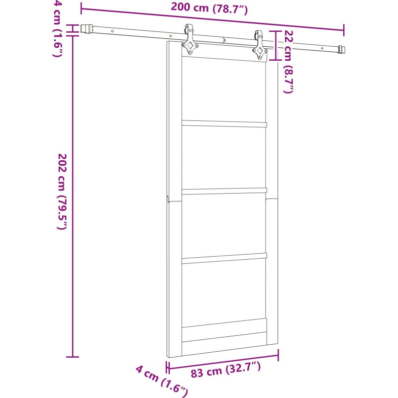 Drzwi przesuwne z zestawem akcesoriów Białe 83x202 cm Drewno Sosnowe – Nowoczesne rozwiązanie do Twojego wnętrza