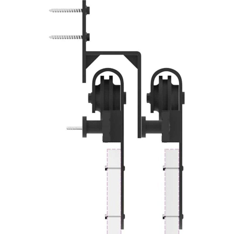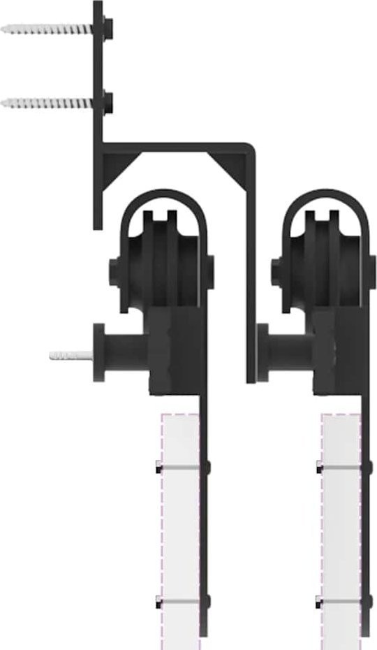 ZastosowanieZestaw jest idealny do podwójnych drzwi barn, pozwalając na niezależne przesuwanie dwóch drzwi na dwóch torach bez potrzeby dodatkowej przestrzeni. Może być stosowany w szafach, spiżarniach lub w różnych otworach na tej samej ścianie.