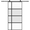 - Zawartość dostawy: 1 x drzwi, 2 x szyna przesuwna, 2 x zderzak, 2 x rolka, 5 x zacisk montażowy, 1 x prowadnica podłogowa, inne niezbędne elementy