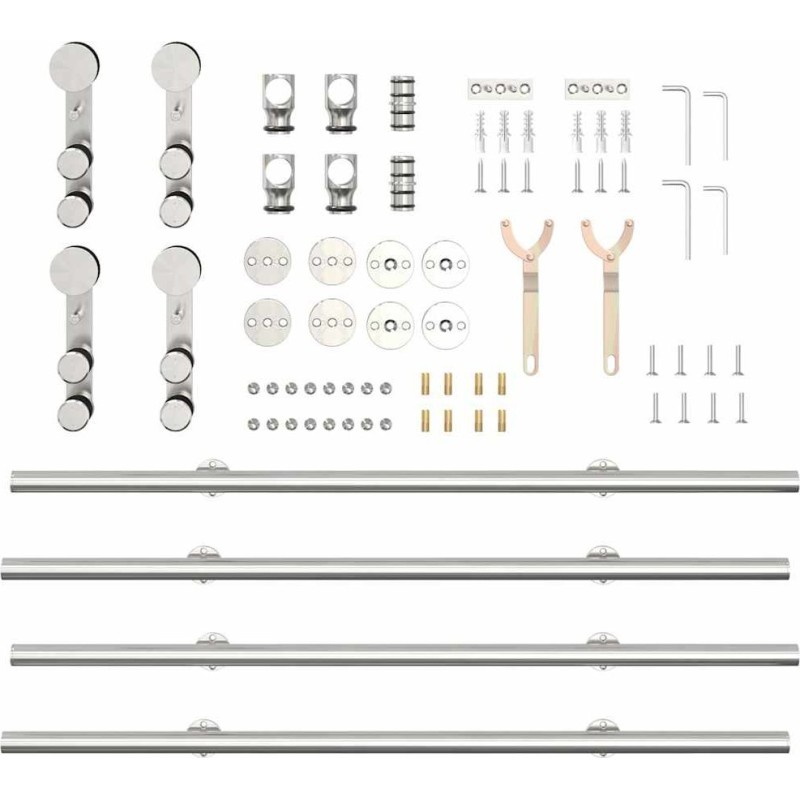 vidaXL vidaXL System do mocowania drzwi przesuwnych, 183 cm, stal, srebrny
