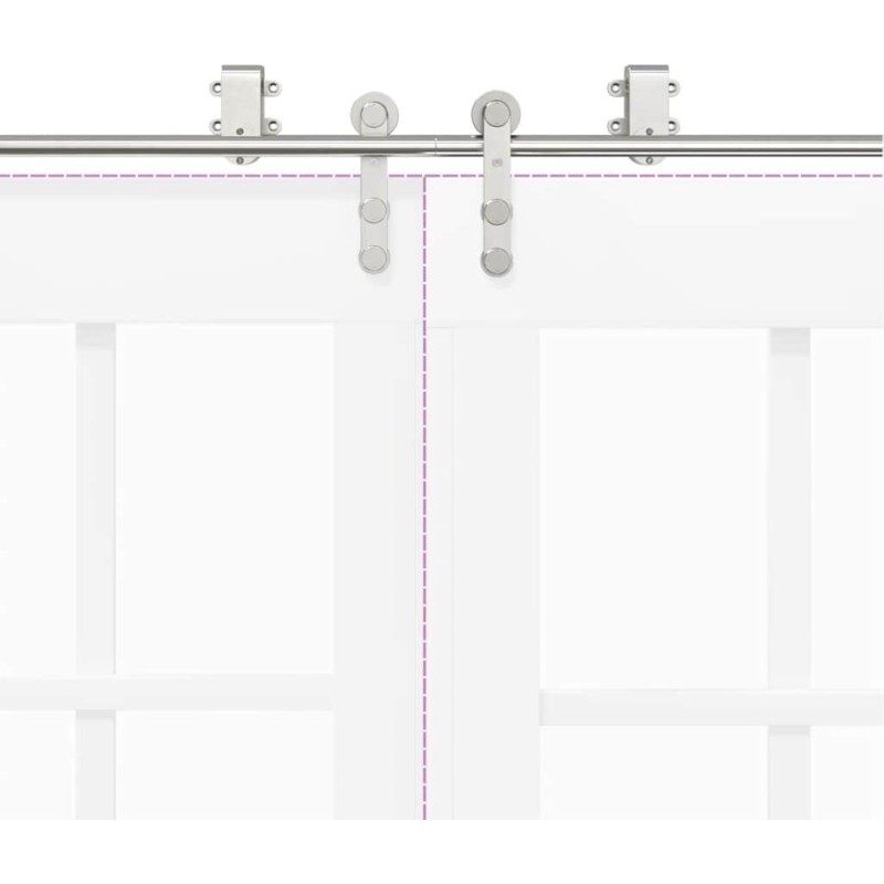 - Idealny do podwójnych drzwi do stodoły: gdy przestrzeń na ścianie jest ograniczona, zestaw uchwytów omijających drzwi do stodoły umożliwia niezależne przesuwanie dwóch drzwi na dwóch szynach bez konieczności zapewnienia dodatkowego miejsca.
