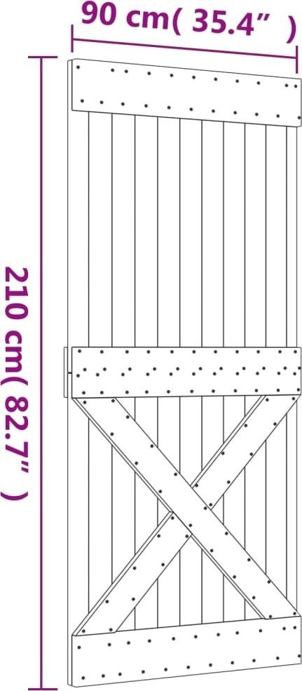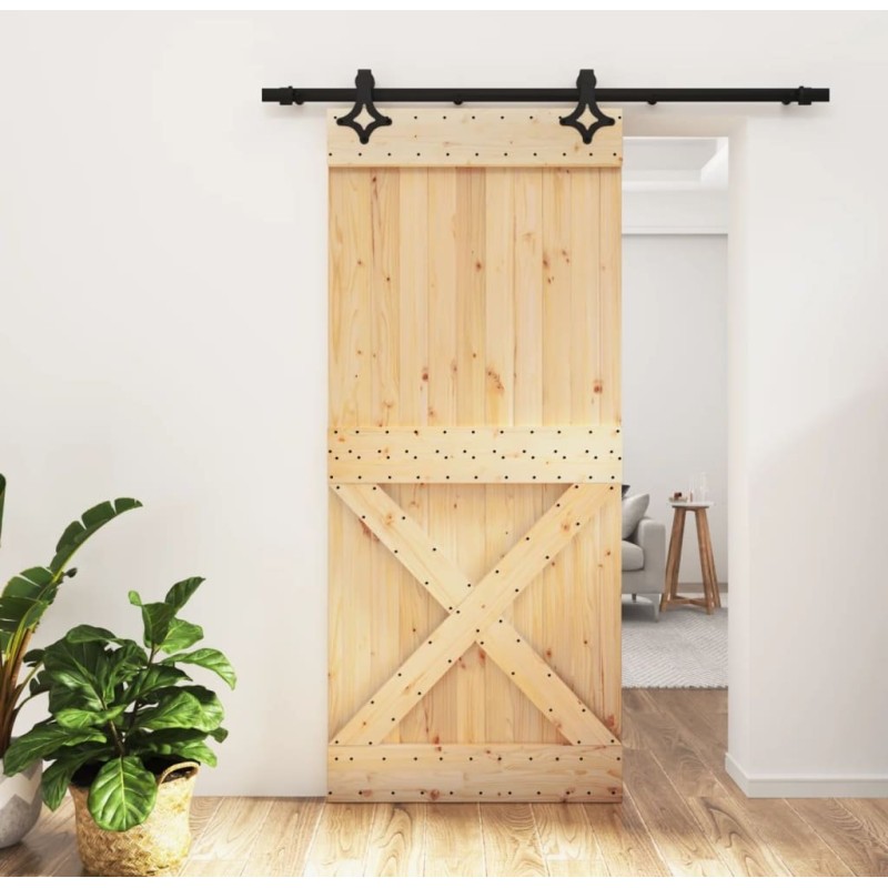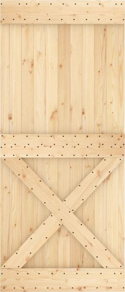 vidaXL Drzwi przesuwne z osprzętem, 90x210 cm, lite drewno sosnowe