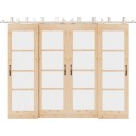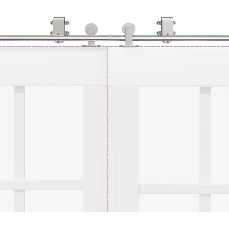 - Idealny do podwójnych drzwi do stodoły: gdy przestrzeń na ścianie jest ograniczona, zestaw uchwytów omijających drzwi do stodoły umożliwia niezależne przesuwanie dwóch drzwi na dwóch szynach bez konieczności zapewnienia dodatkowego miejsca.