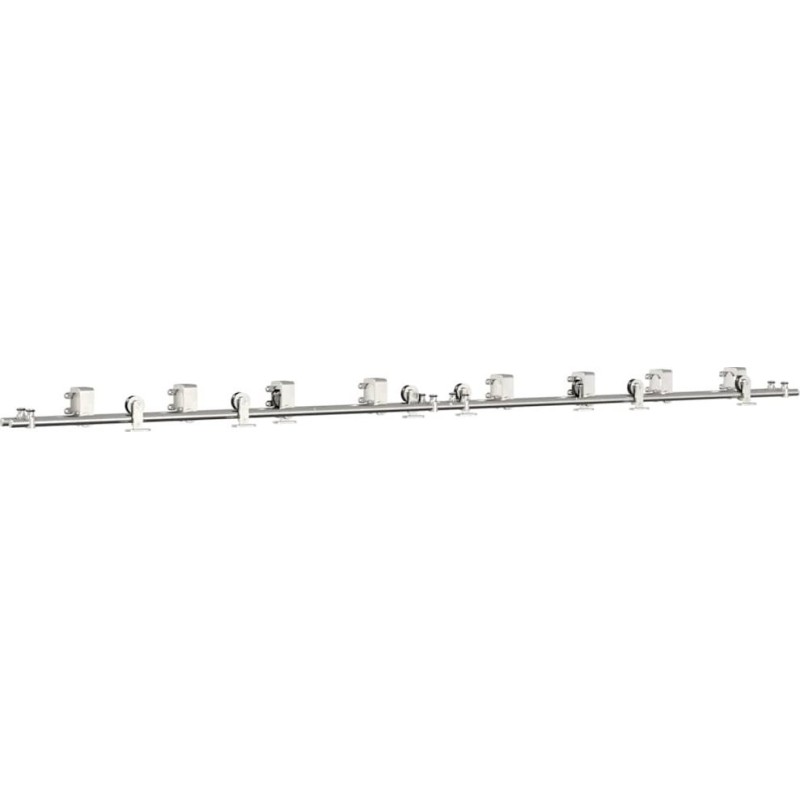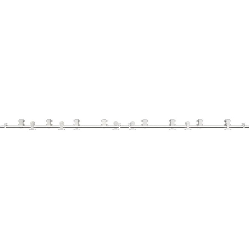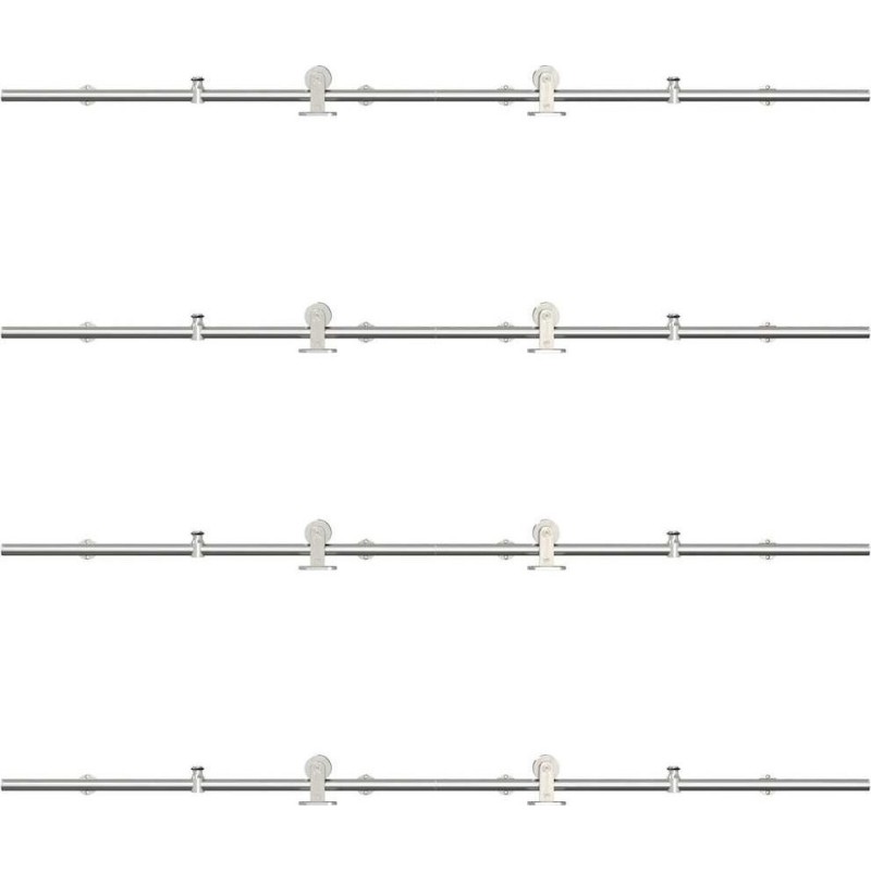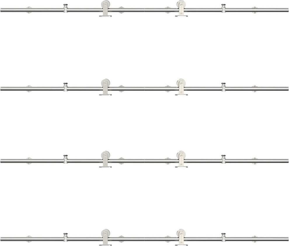Dzięki temu zestawowi okuć do drzwi przesuwnych możesz łatwo zamontować podwójne szyny, aby drzwi przesuwały się jedne przed drugimi, a drugie za sobą.