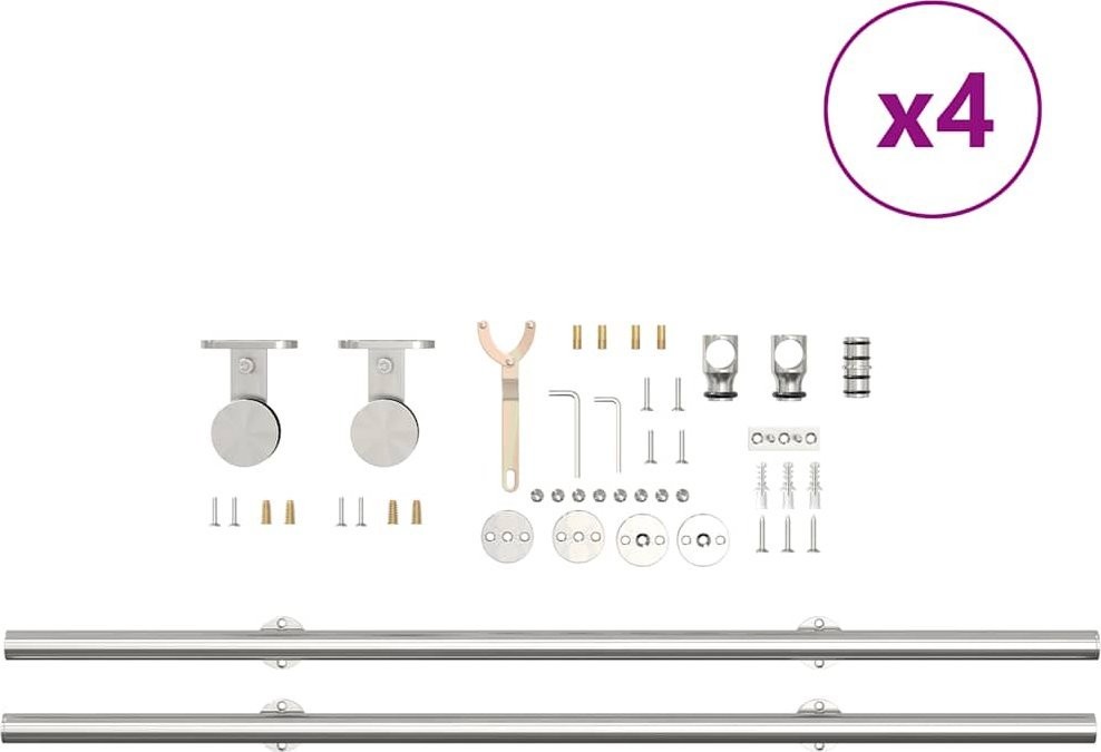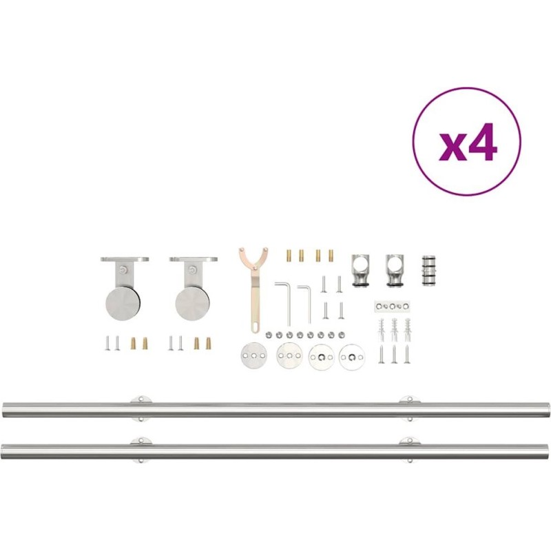 vidaXL vidaXL System do mocowania drzwi przesuwnych, 183 cm, stal, srebrny