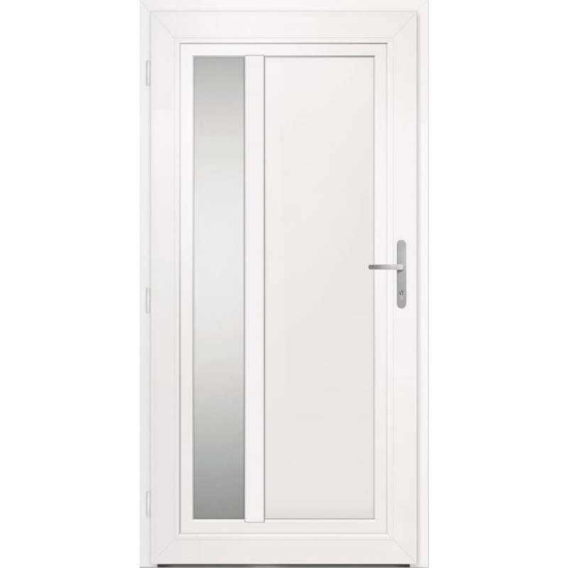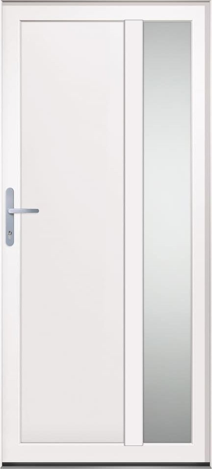 - Trwały materiał: drzwi wejściowe zawierają ramę z PVC. Jest ona odporna na uszkodzenia spowodowane przez termity, czynniki korozyjne i wilgoć.