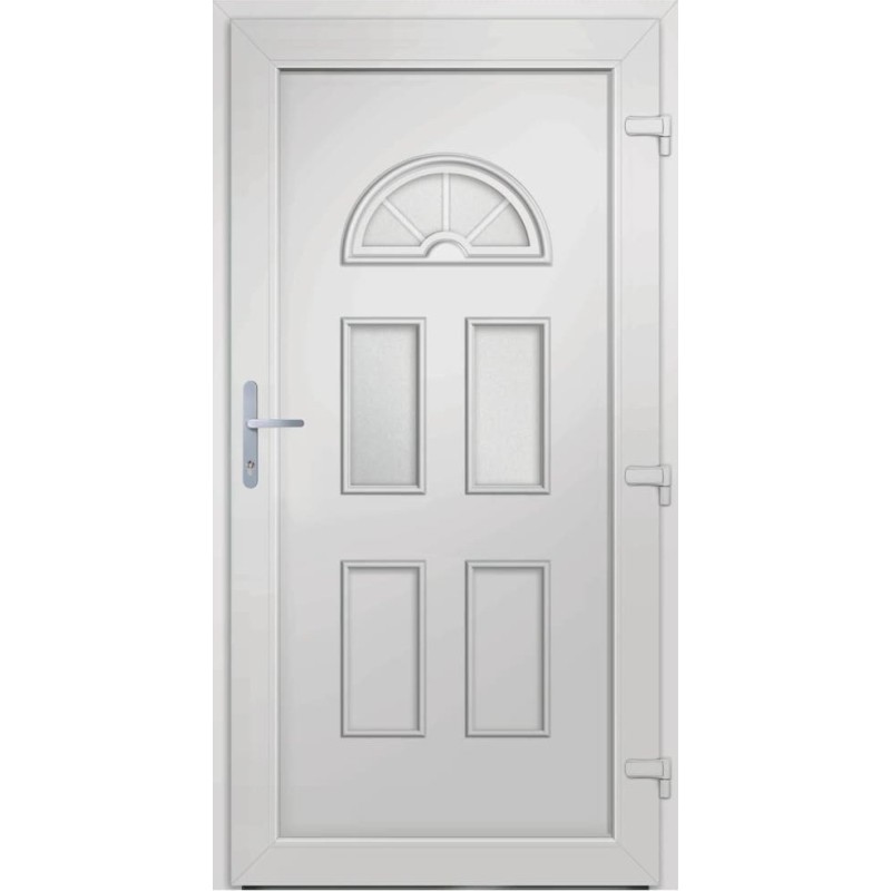 - Trwały materiał: drzwi wejściowe zawierają ramę z PVC. Jest ona odporna na uszkodzenia spowodowane przez termity, czynniki korozyjne i wilgoć.