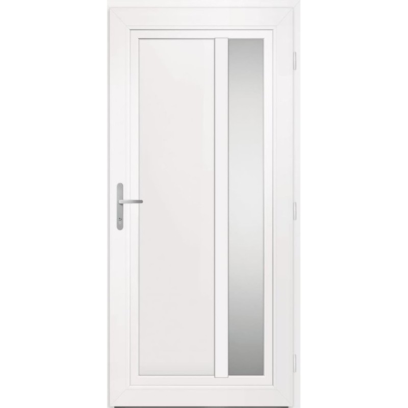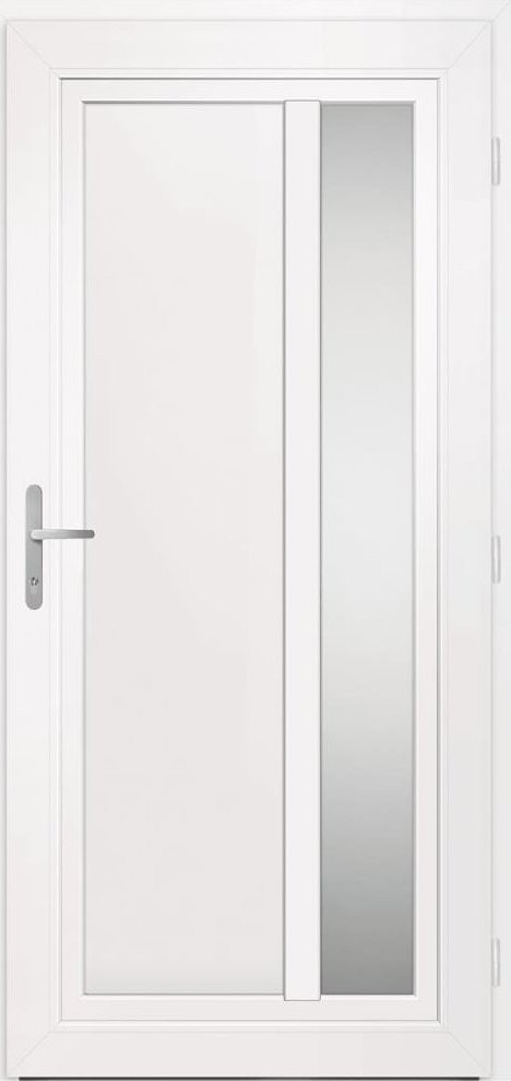 - Trwały materiał: drzwi wejściowe zawierają ramę z PVC. Jest ona odporna na uszkodzenia spowodowane przez termity, czynniki korozyjne i wilgoć.