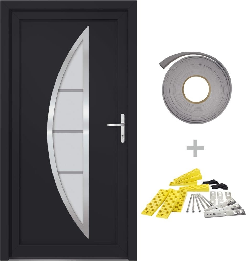 vidaXL Drzwi wejściowe, antracytowe, 108x200 cm, PVC