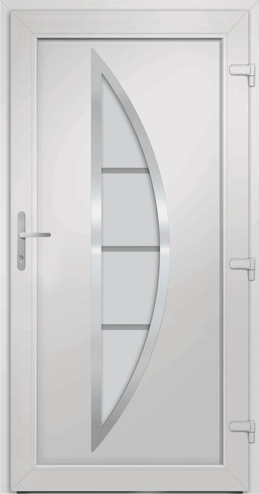 - Trwały materiał: drzwi wejściowe zawierają ramę z PVC. Jest ona odporna na uszkodzenia spowodowane przez termity, czynniki korozyjne i wilgoć.
