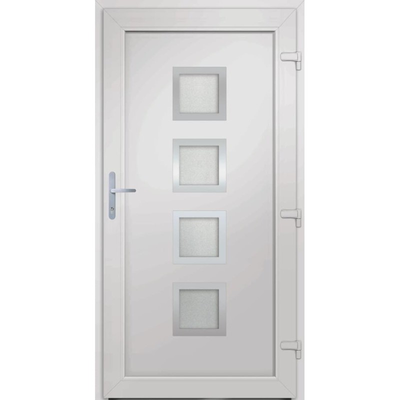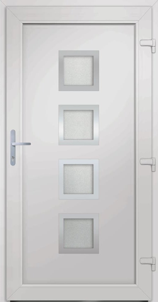 - Trwały materiał: drzwi wejściowe zawierają ramę z PVC. Jest ona odporna na uszkodzenia spowodowane przez termity, czynniki korozyjne i wilgoć.