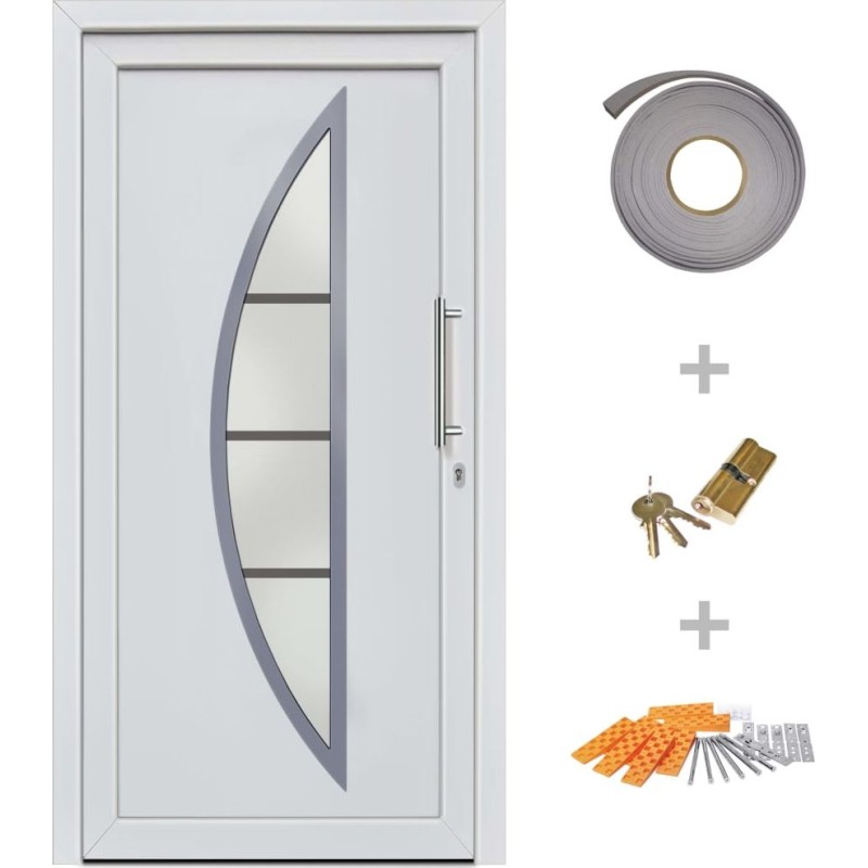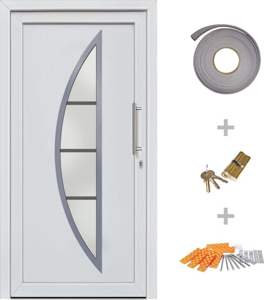 - Przesyłka obejmuje drzwi, zestaw uchwytów, wkładkę patentową, 3 klucze, taśmę uszczelniającą i zestaw montażowy