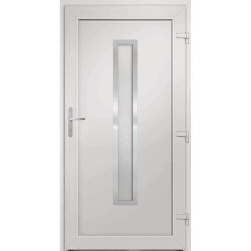 - Trwały materiał: drzwi wejściowe zawierają ramę z PVC. Jest ona odporna na uszkodzenia spowodowane przez termity, czynniki korozyjne i wilgoć.