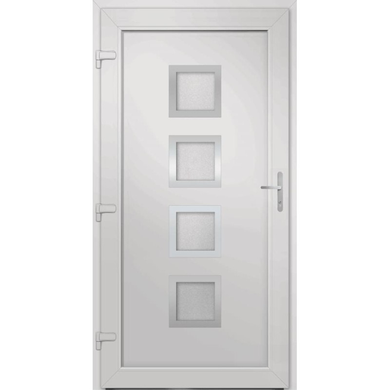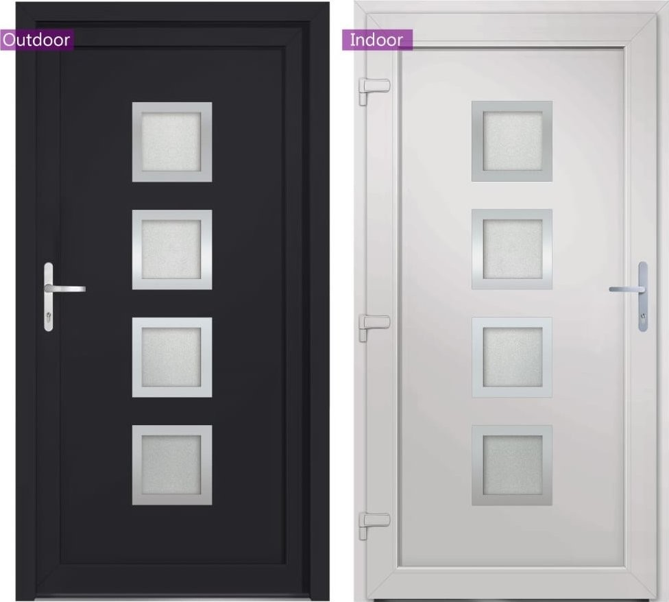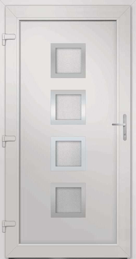 - Trwały materiał: drzwi wejściowe zawierają ramę z PVC. Jest ona odporna na uszkodzenia spowodowane przez termity, czynniki korozyjne i wilgoć.