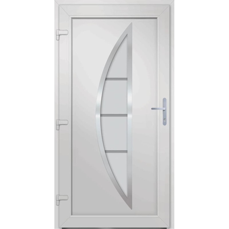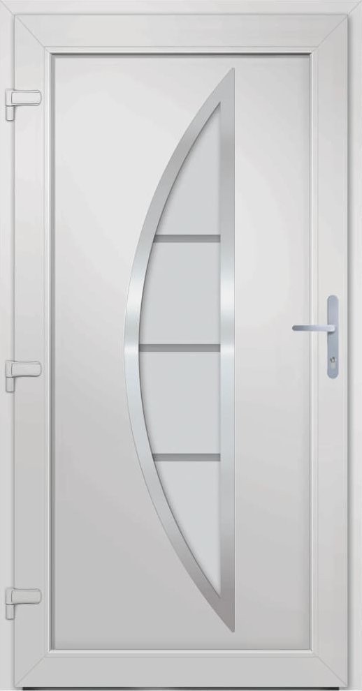 - Trwały materiał: drzwi wejściowe zawierają ramę z PVC. Jest ona odporna na uszkodzenia spowodowane przez termity, czynniki korozyjne i wilgoć.