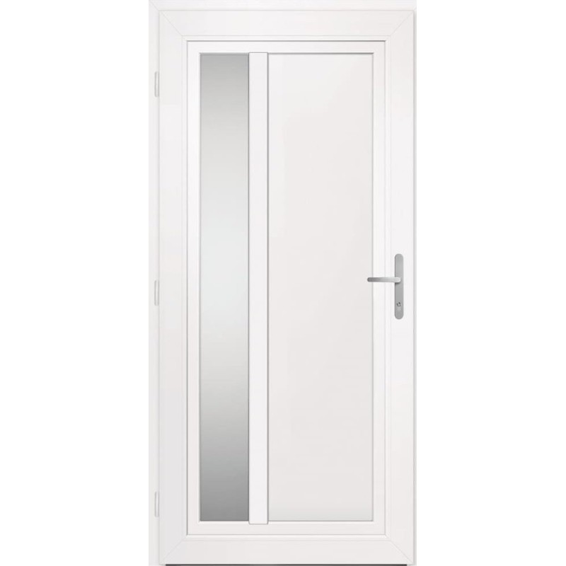 - Trwały materiał: drzwi wejściowe zawierają ramę z PVC. Jest ona odporna na uszkodzenia spowodowane przez termity, czynniki korozyjne i wilgoć.