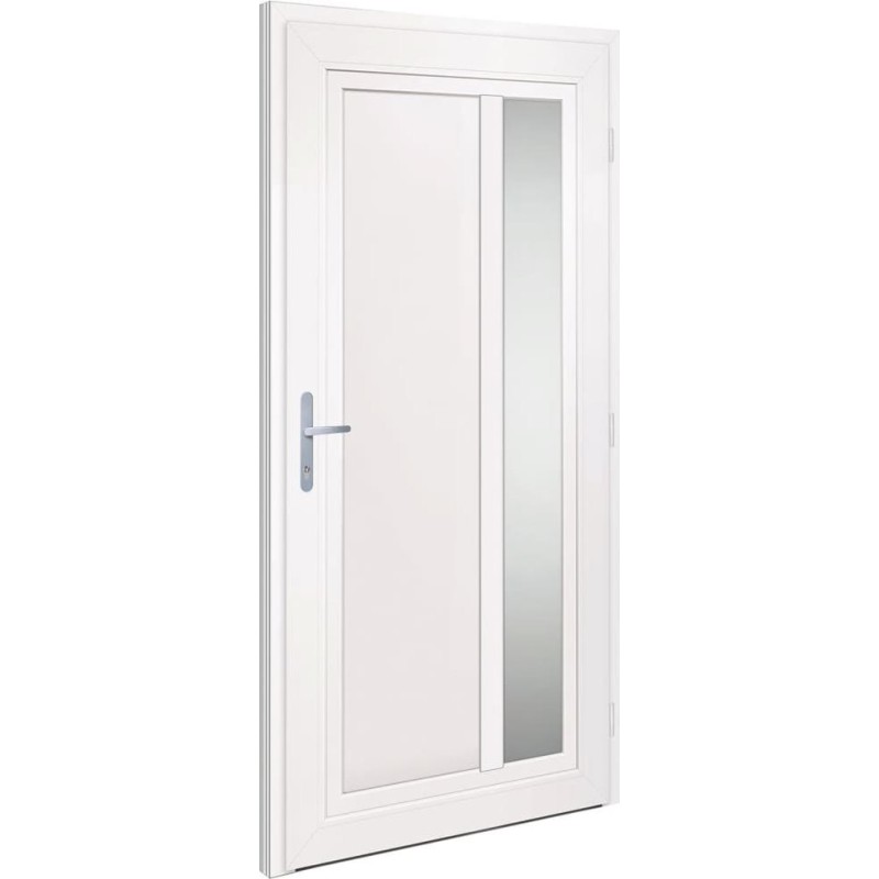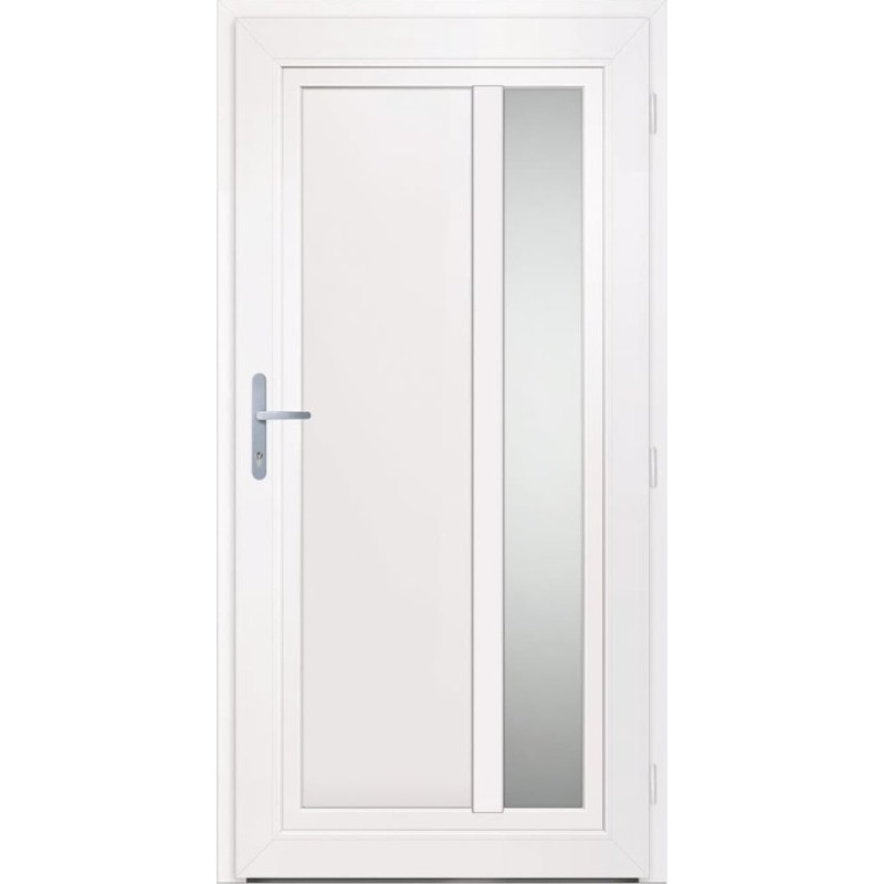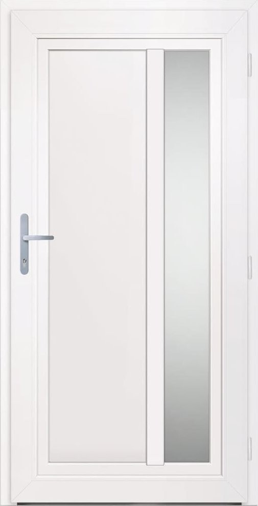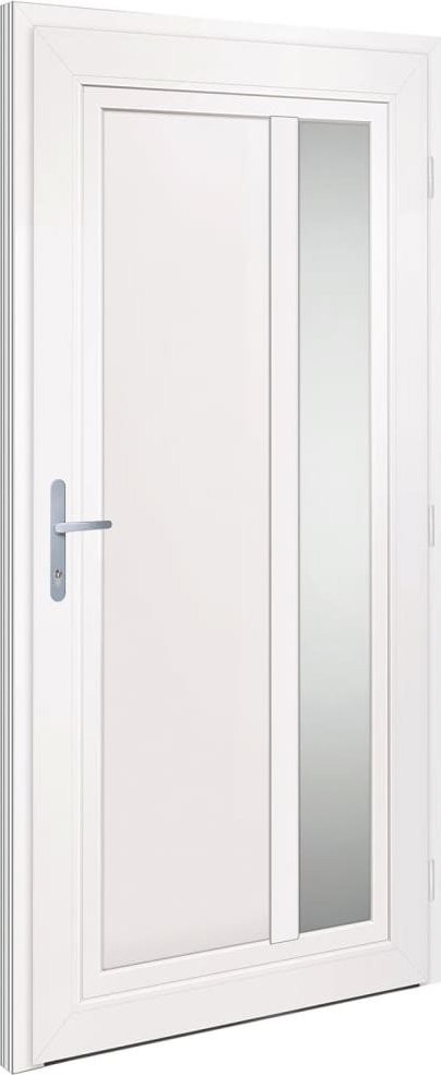- Trwały materiał: drzwi wejściowe zawierają ramę z PVC. Jest ona odporna na uszkodzenia spowodowane przez termity, czynniki korozyjne i wilgoć.