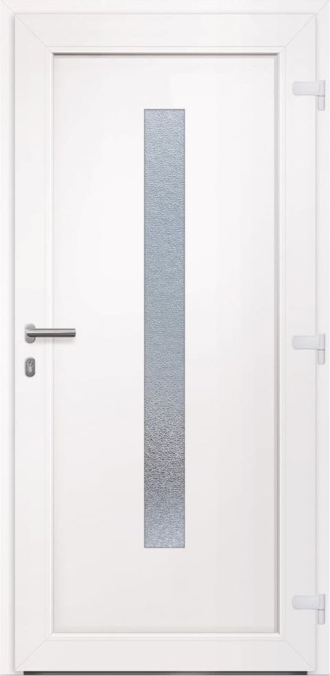 - Trwały materiał: drzwi wejściowe zawierają ramę z PVC. Jest ona odporna na uszkodzenia spowodowane przez termity, czynniki korozyjne i wilgoć.