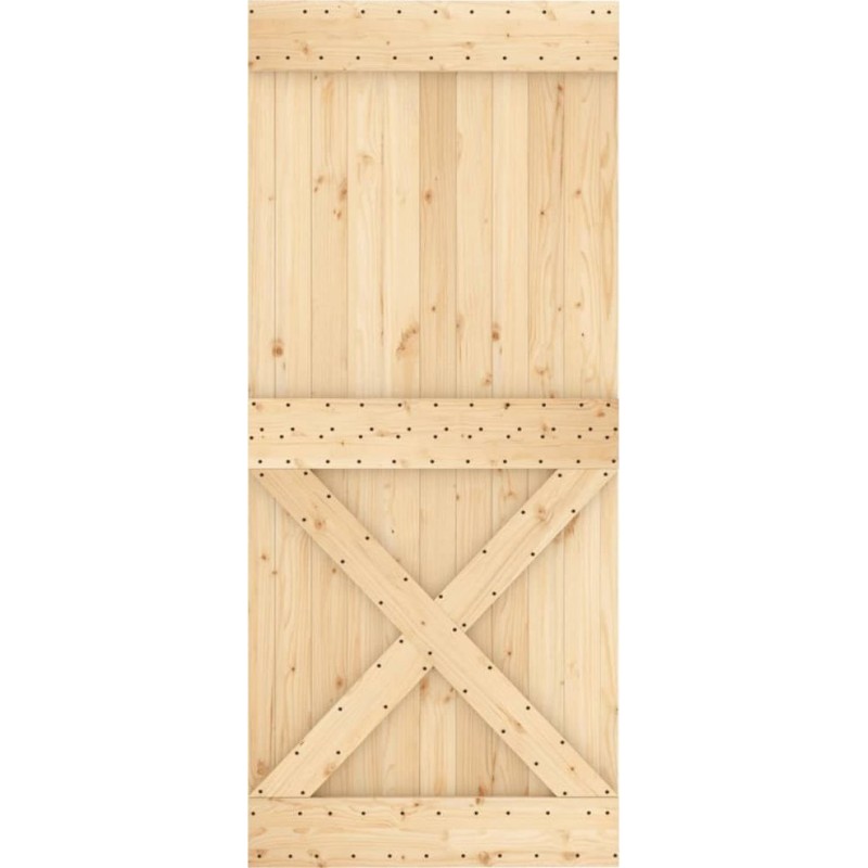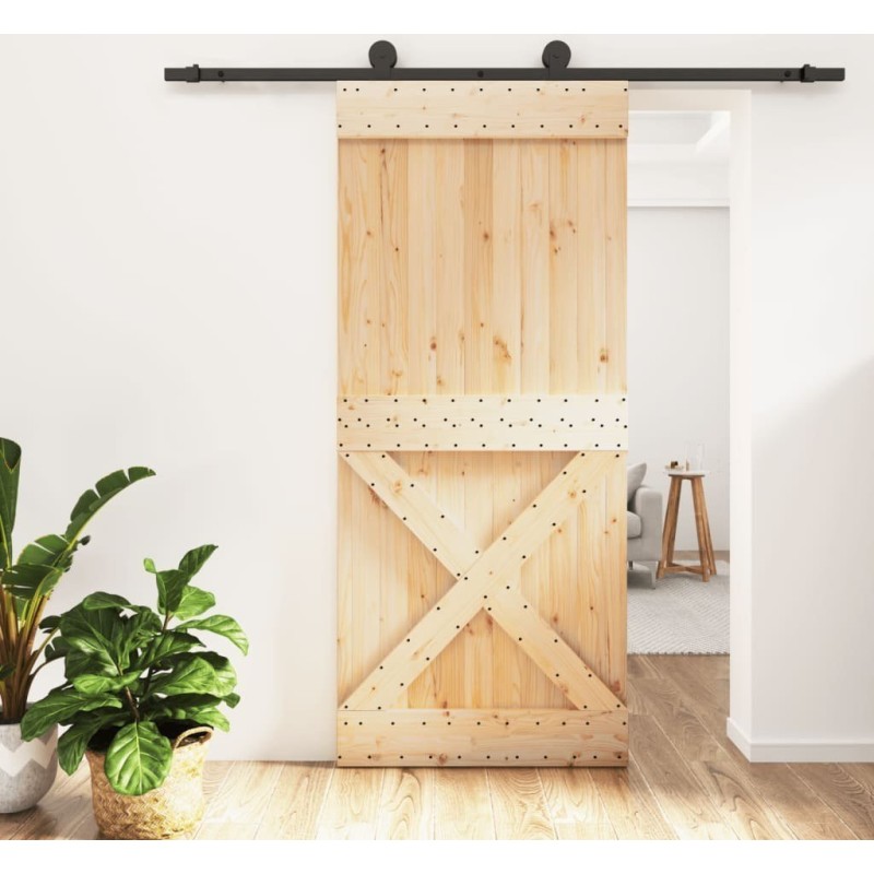 vidaXL Drzwi przesuwne z osprzętem, 90x210 cm, lite drewno sosnowe