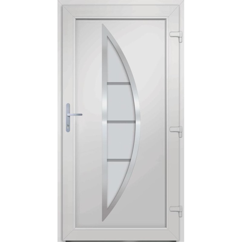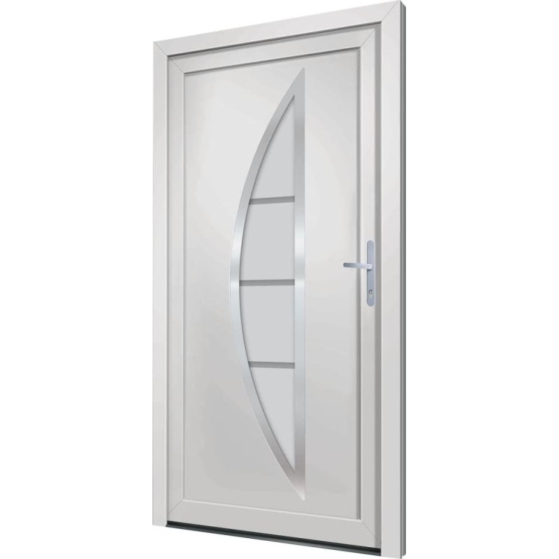 - Trwały materiał: drzwi wejściowe zawierają ramę z PVC. Jest ona odporna na uszkodzenia spowodowane przez termity, czynniki korozyjne i wilgoć.