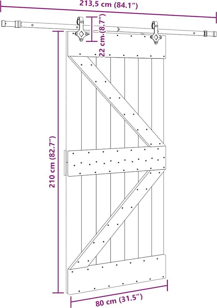 vidaXL vidaXL Drzwi przesuwne z osprzętem, 80x210 cm, lite drewno sosnowe