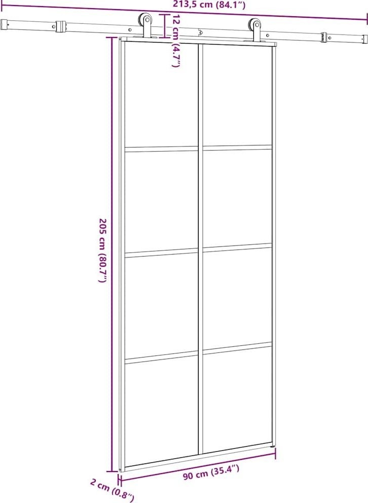 vidaXL Drzwi przesuwne z osprzętem, 90x205 cm, szkło ESG i aluminium