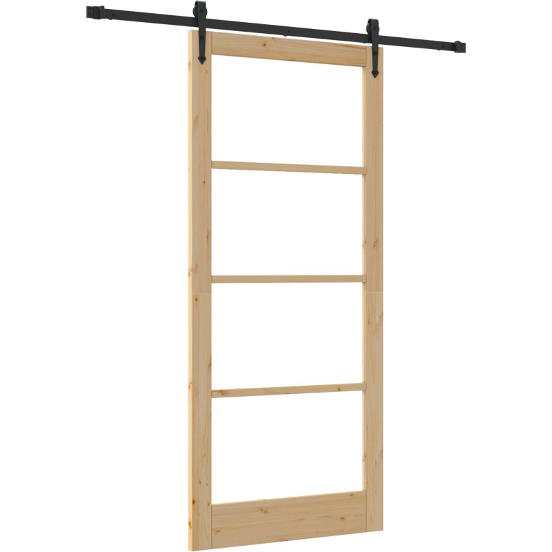 Drzwi przesuwne vidaXL z zestawem akcesoriów 93x211 cm z solidnego drewna sosnowego, Drzwi wewnętrzne vidaXL z przeszkleniem 'OR