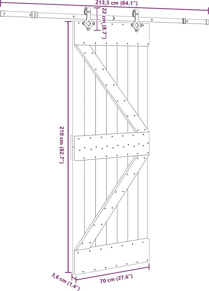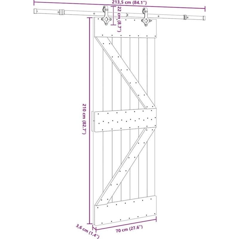 vidaXL Drzwi przesuwne z osprzętem, 70x210 cm, lite drewno sosnowe