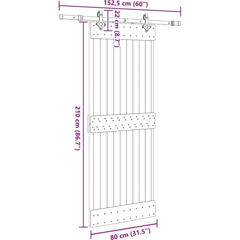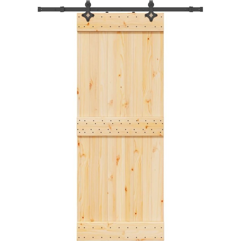 vidaXL Drzwi przesuwne z osprzętem, 80x210 cm, lite drewno sosnowe