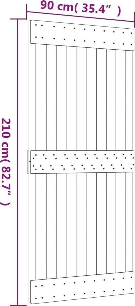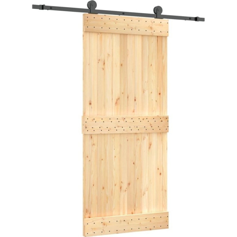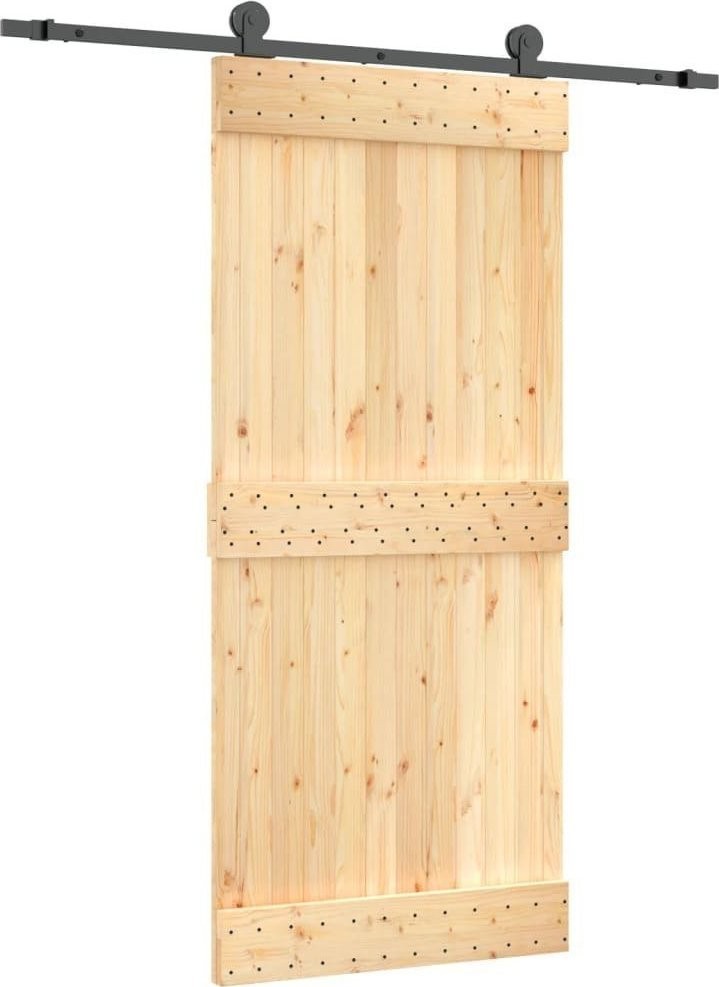 vidaXL Drzwi przesuwne z osprzętem, 90x210 cm, lite drewno sosnowe