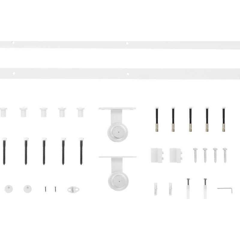 - Ciche i bezproblemowe suwanie: dzięki wewnętrznym łożyskom drzwi wewnętrzne przesuwają się gładko i cicho. W zestawie znajdują się również ograniczniki, które zapobiegają wyskoczeniu rolek, a gumowe uszczelki amortyzują uderzenia rolek i redukują hałas.