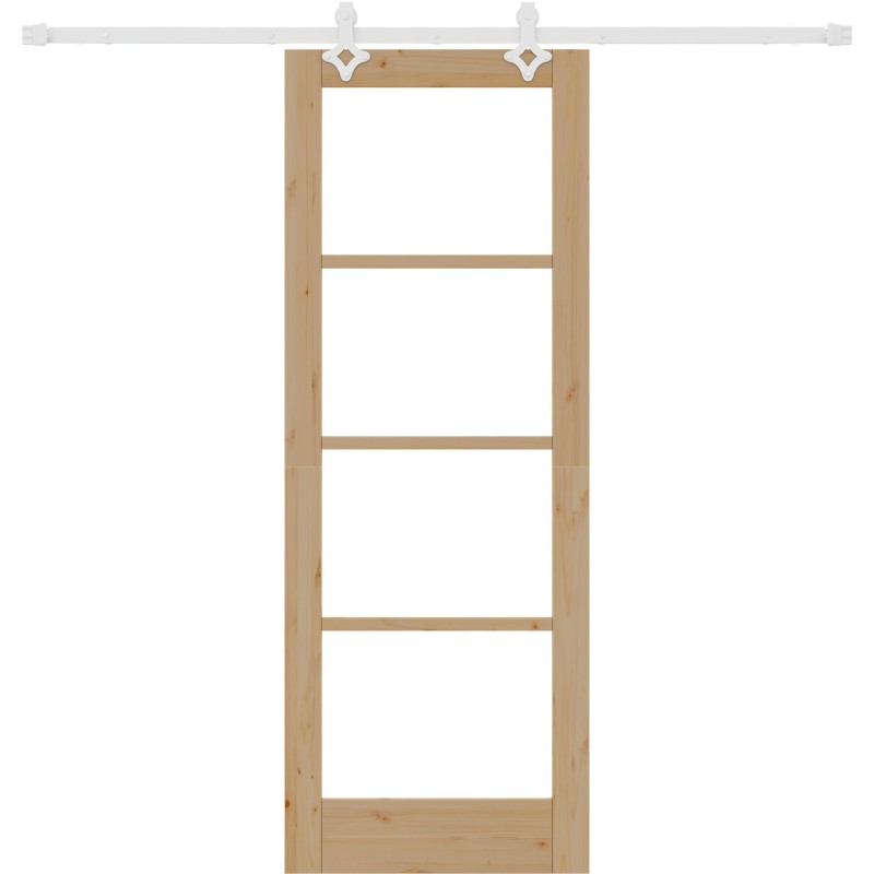 - Kompletny zestaw akcesoriów: Zestaw zawiera wszystkie niezbędne elementy do montażu, jak 2 szyny przesuwne, rolki oraz prowadnicę podłogową. Wszystko jest dostosowane do tych drzwi, co zapewnia płynne działanie.