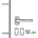 Otrzymasz cały komplet, obejmujący również uchwyt zewnętrzny ze stali nierdzewnej, uchwyt wewnętrzny, a także wkładkę patentową, klucze, taśmę uszczelniającą i zestaw montażowy.