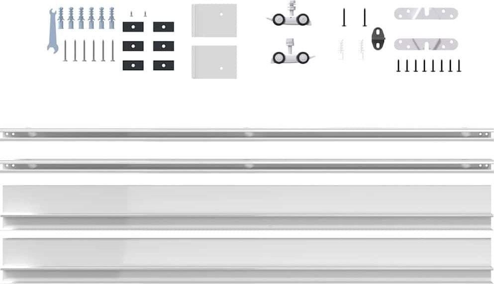 - Kompaktowa konstrukcja: zestaw prowadnic do drzwi przesuwnych pasuje do niemal każdego wystroju dzięki kompaktowemu, ponadczasowemu wzornictwu.