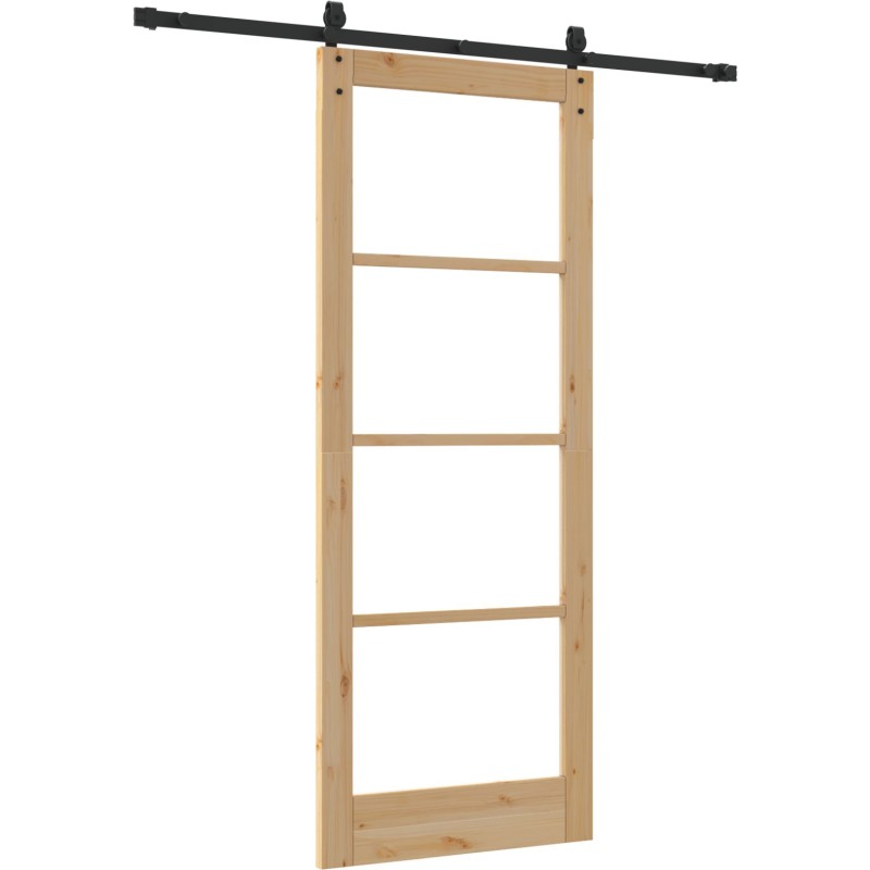Drzwi przesuwne vidaXL z zestawem okuć 83x211 cm z litego drewna sosnowego, Drzwi wewnętrzne vidaXL z szybą 'ORKDAL'83x211x4 cm