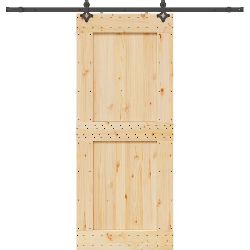 vidaXL Drzwi przesuwne z osprzętem, 95x210 cm, lite drewno sosnowe